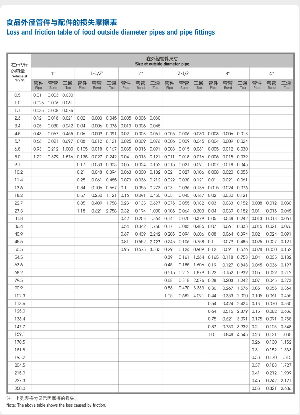 食品外徑管件與配件的損失摩擦表